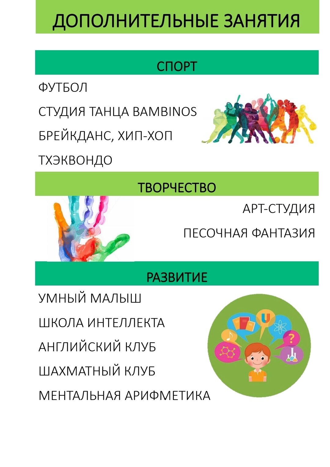 Здесь с любовью развивают интеллект ребятишек и подготавливают их к взрослой жизни в новейшей информационной эпохе. Педагоги не только занимаются адаптацией к детскому саду и школе, уча разным навыкам и техникам социализации. Именно после таких занятий детки начинают осознавать себя как взрослые личности и уже в нежном детстве начинают осознавать, чем хотят заниматься в будущем. Дети - это наше будущее, а значит, им стоит отдавать все самое лучшее. Частный детский сад Happy-sadik предлагает вам достойное место, где готовы развивать интеллект ваших детей, учить их навыкам общения, нести идею настоящей дружбы, а также учить их не избегать всех препятствий, которые могут встретиться на жизненном пути.